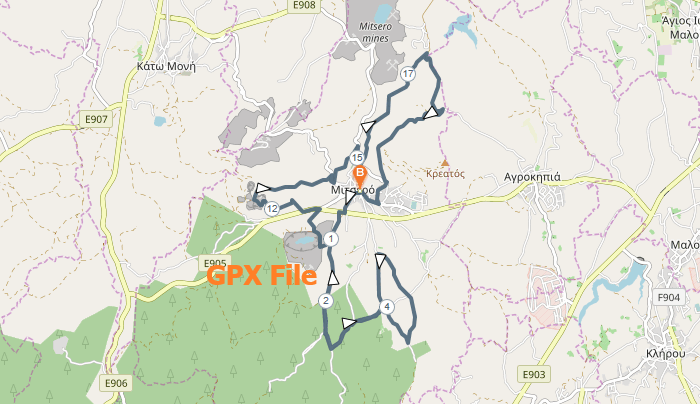 From the start of the race we run southbound, exit the village at 1st km and enter the beautiful forest of Mitsero and Agios Epiphanios area, we run a 9km rhombus shape and at 11th km we pass from the landmark of the race Kokkinopezoula Mine also known as “Red Lake”. We continue towards Kokkinoyia Mine located at 13km and after we pass next to the village at 16km, we run sideways the beautiful Rodanos river and the 100 years old Olive trees.